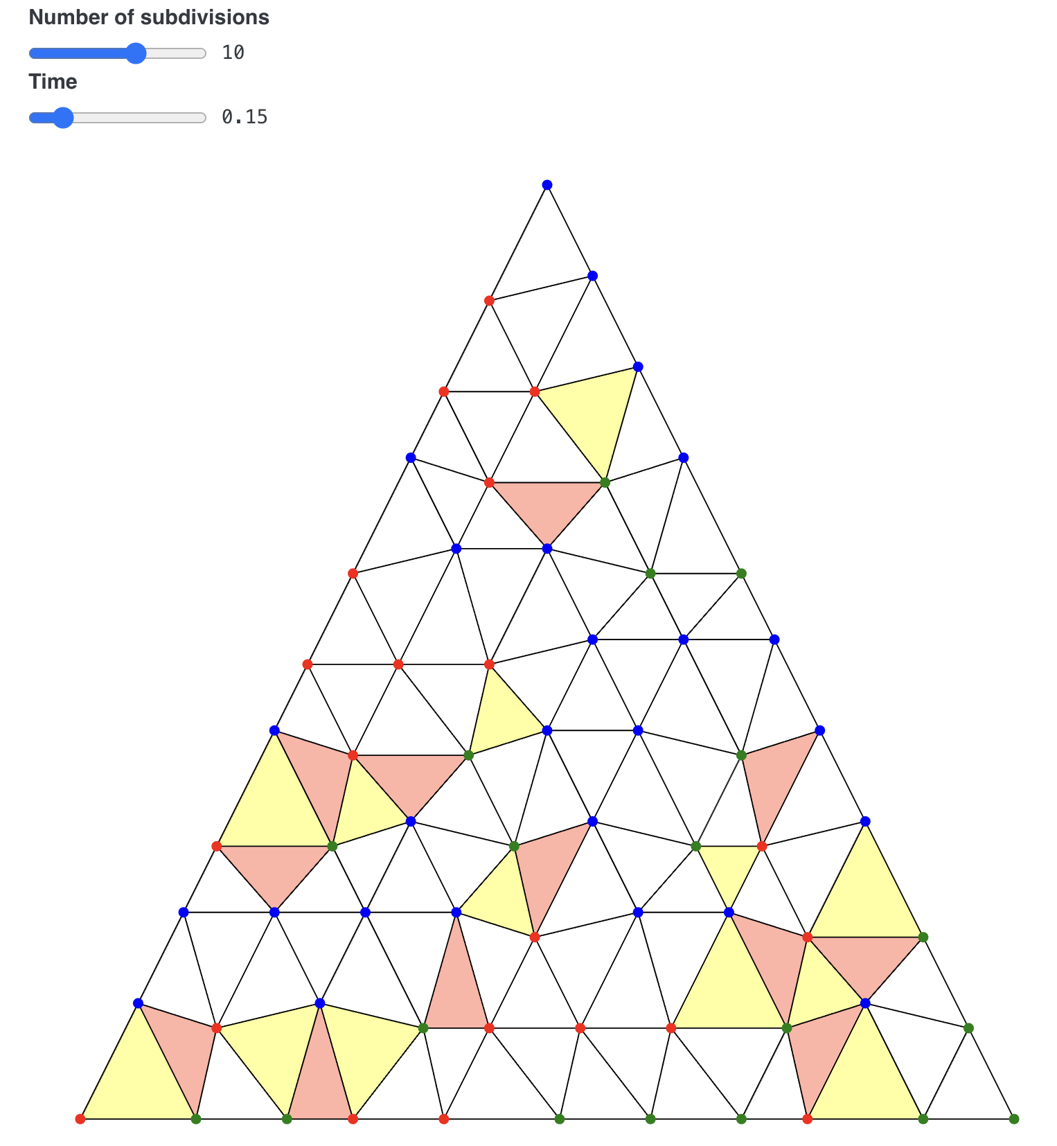 This is my new favorite proof of Sperner’s lemma. In the following app the vertices are slowly morphed to the “cardinal”